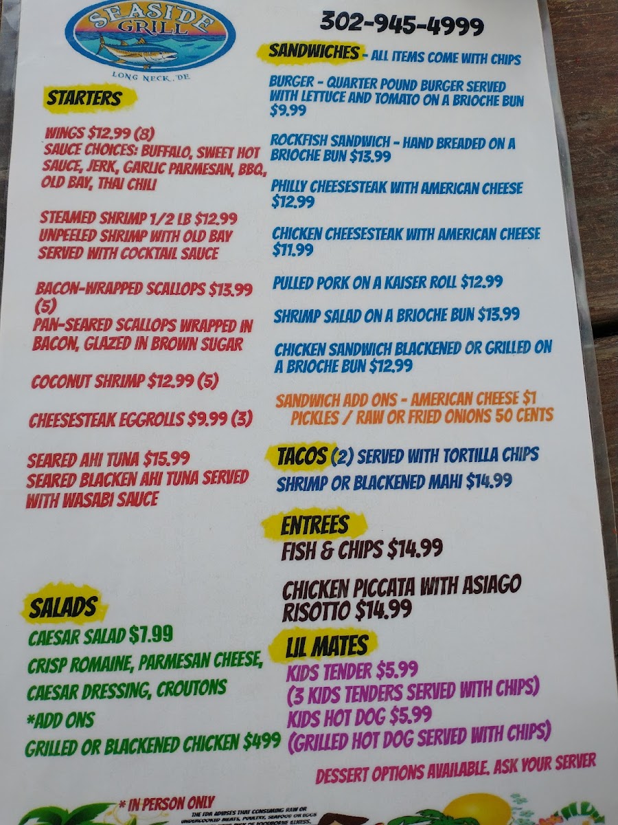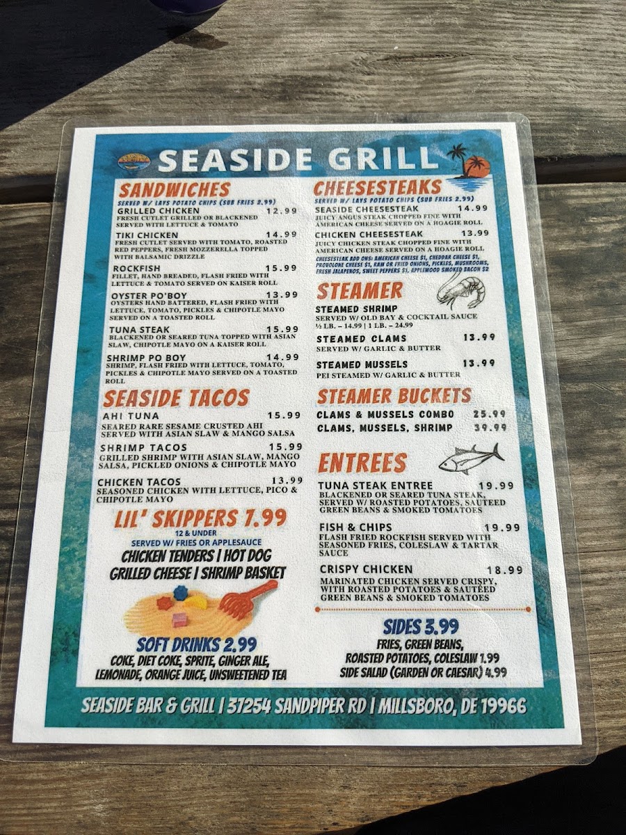 Welcome to Seaside Bar & Grill - Long Neck, a charming waterfront haven located at 99 Sandpiper Rd, Long Neck, DE. This tropical-themed bar offers a delightful escape with a menu that caters to both casual diners and families alike.